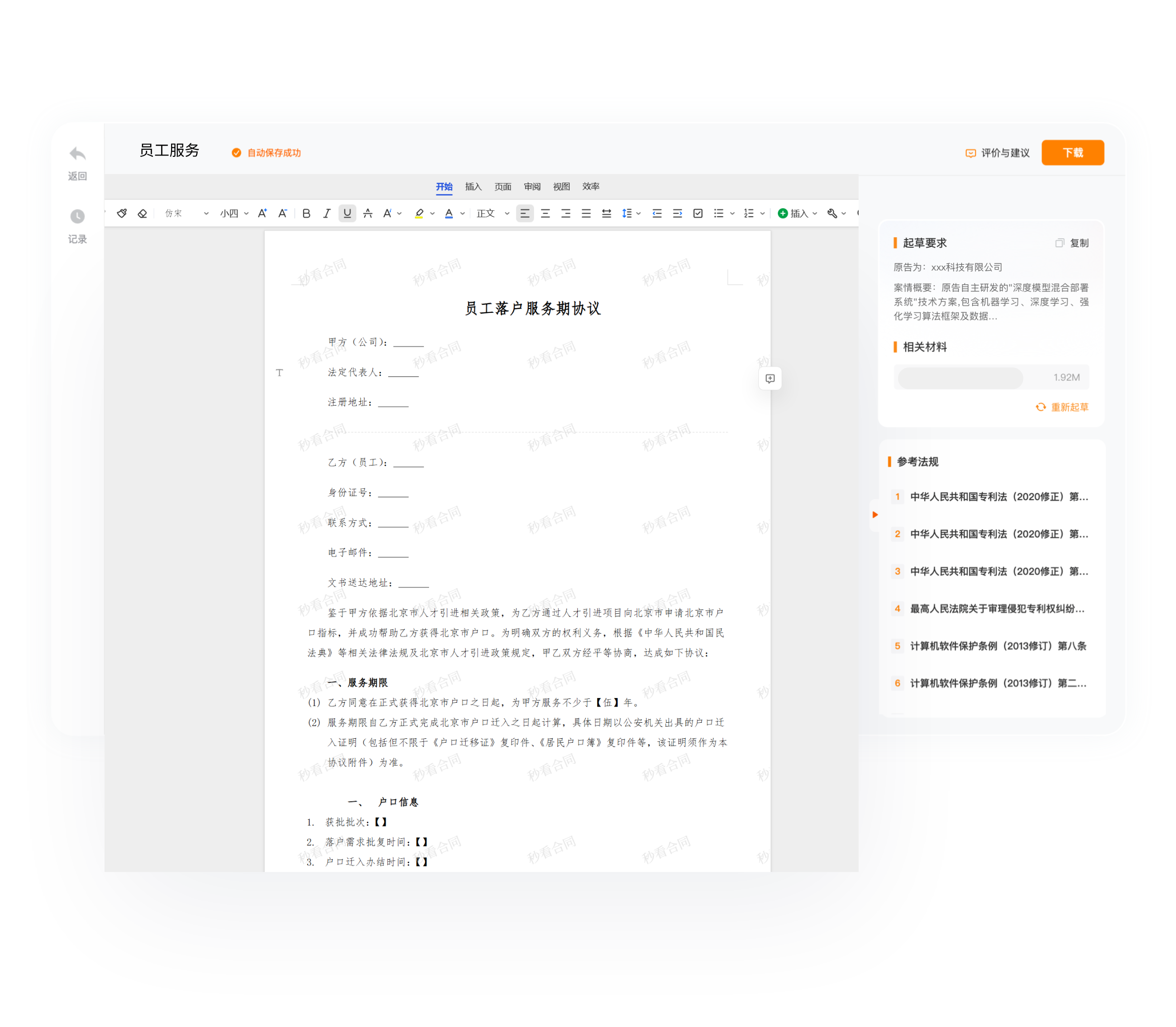 智能生成合同批注与修改建议,还原真实业务场景,一键生成审查意见书